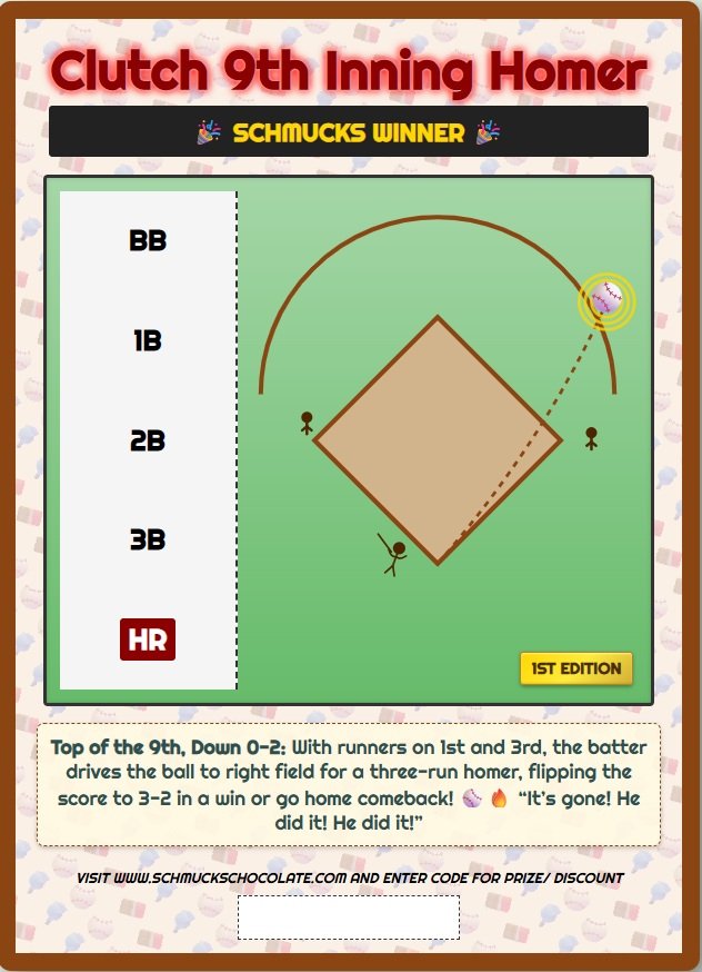 SchMucks Chocolate™ Corporate has created baseball cards. A card is included in each SchMucks Chocolate™ Baseball Bar. Only 70 Baseball Bars have been produced.